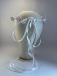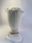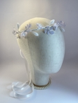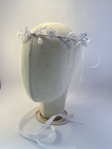 Прикраса доповнена білою стрічкою, що надає ніжності та дозволяє зручно зафіксувати віночок у волоссі.