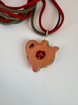 Авторська підвіска на шию у формі куманця, виготовлена з глини та оздоблена ручним розписом. Стильна глиняна прикраса додає образу етнічного характеру та індивідуальності. Легка та компактна, вона зручна для щоденного носіння та стане унікальним акцентом будь-якого образу.