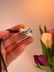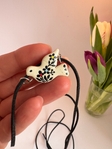 Ніжна підвіска на шию у вигляді білої пташечки горлиці, виготовлена з глини та оздоблена ручним розписом. Компактний розмір робить її легкою та зручною для щоденного носіння. Авторська глиняна прикраса додає образу витонченості, природної ніжності та індивідуального стилю.