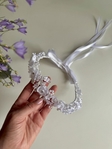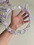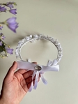 Цей ніжний та елегантний віночок стане ідеальним доповненням до образу дівчинки в день її Першого Святого Причастя. Витончене поєднання білих квіточок, перлинок і кришталевих намистинок створює вишуканий вигляд, що символізує чистоту та святковість.