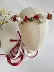 Стильний віночок-гілочка ручної роботи з поєднання червоних і білих квітів 🌿Витончена прикраса на зеленій основі виглядає максимально натурально та додає образу святковості.Ідеальний аксесуар для весілля, фотосесії, першого причастя або народного образу.Кожен віночок для волосся створений з любов’ю та увагою до деталей.
