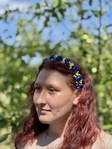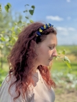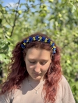 Жовто-блакитний віночок ручної роботи – стильний та символічний аксесуар на голову. Тоненький обруч прикрашений дрібними квітами у жовтих та блакитних відтінках. Він виглядає ніжно, гармонійно та підкреслює красу українських традицій.