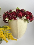 Віночок на голову з темно-вишневих квітів півонії – елегантний аксесуар, що доповнить образ витонченістю та шармом.