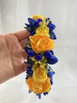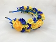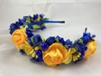 Віночок в патріотичних жовто блакитних кольорахручної роботи з штучних квітів високої якості, легкий та комфортний у носінні.Цей етно- віночок чудово підшйде для фотосесій, свят, фестивалів, етно-заходів і особливих подій. Завдяки гнучкій основі віночок добре тримається на голові та підходить на будь який розмір голови.
